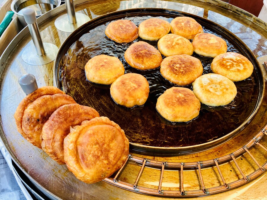 仁寺洞(インサドン) | 털보네 호떡(トルボネ・ホットク) | 仁寺洞文化の通り沿いにある屋台。揚げたてで外はカリッと、中はもちもち。蜜・ナッツ入りの甘いタイプやチャプチェ入りの辛めタイプもある。 |