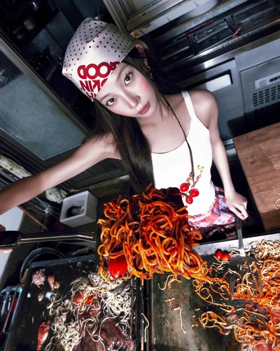MVは、フィットネス愛好家たちが汗を流すジムから始まります。しかし、彼らは明らかに食べ物を渇望している様子。そこへLE SSERAFIMがフードトラックで「乱入」し、「自ら調理したスパゲッティ」を振る舞います。